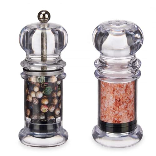 Grunwerg Moulin à Poivre et à Sel de Table en Acrylique avec rectifieuse en céramique, 2-en-1 Salière et Poivrière