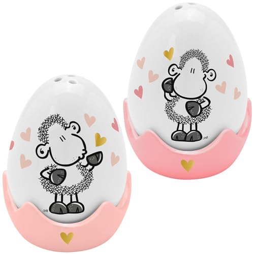 Sheepworld 48581 Lot de 4 coquetiers avec salière et poivrière en forme d'œuf et 2 coquetiers Coffret cadeau Nid de Pâques Décoration de Pâques