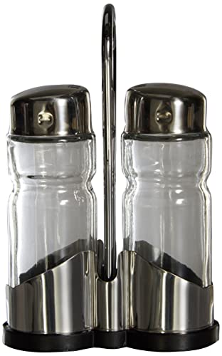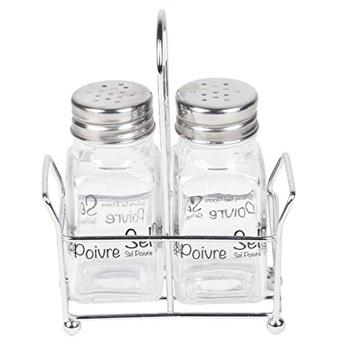 Equinox 520926 Ensemble SALIERE et POIVRIERE en verre et bouchon Inox avec support en Fer Chromé - Lot de Salière et Poivrière Traditionnelle