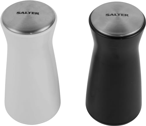 Salter BW12947EU7 Ensemble Salière et Poivrière à Gravité - Moulins à Assaisonnements Classiques, Marmites à Sel et à Poivre, Inclinable pour Fonctionner, Conception sans Déversement, Monochrome