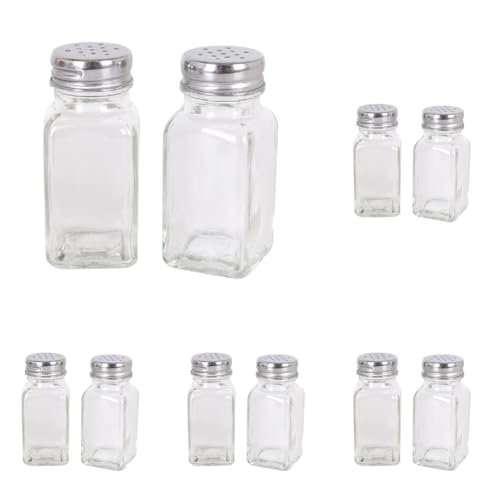 Lot de Salière et Poivrière Traditionnelle - 8,5x4,5x10cm - Lot de 10 Récipients Classiques pour Sel et Poivre - Transparent, Cuisine, Maison