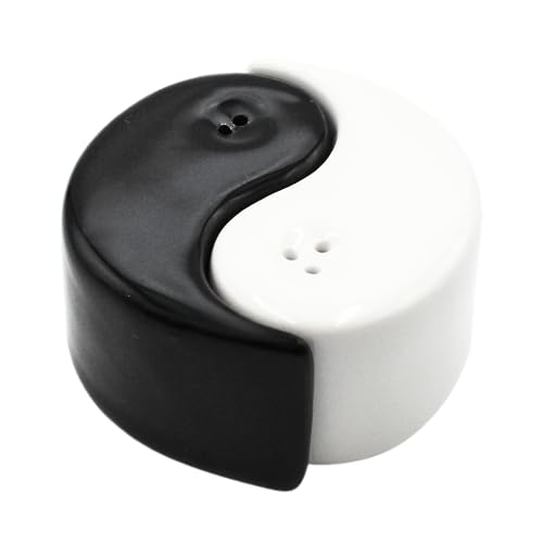Dekohelden24 Salière et poivrière Yin Yang en céramique en noir et blanc, L/l/H env. 6 x 3 x 3 cm.