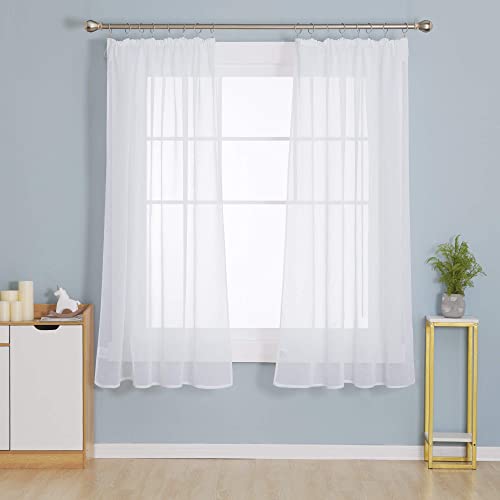 Deconovo Lot de 2 Rideaux Voilage Translucide Rideau Balcon Salon Fenêtre Galon Fronceur Cuisine Maison Chambre Fille 140x145cm Blanc