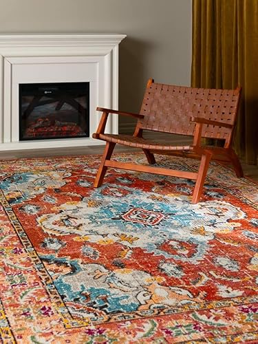 RugVista Leia Tapis intérieur et extérieur Moderne, 160x230 cm, Rectangulaire, Poil Moyen, Nettoyage à Sec, Salon, Chambre, Patio, Balcon, Terrasse, Jardin, Cour, Résiste à l'eau et aux UV, Orange