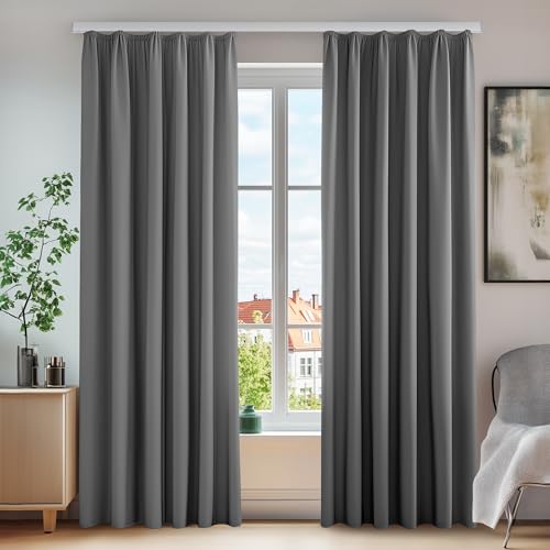Deconovo Lot de 2 Rideaux Salon Balcon Design Moderne Occultant Thermique Anti Froid Rideau Galon Fronceur Chambre Enfant Bureau de Porte 140x200cm Gris Clair
