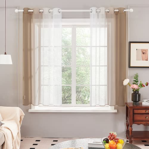 Deconovo Lot de 2 Rideaux Voilages, Décoration Rideau à Oeillets, Dégradé de Couleur pour Chambre Enfant Fille Salon Maison Fenêtre Balcon, Brun, 140×215 CM