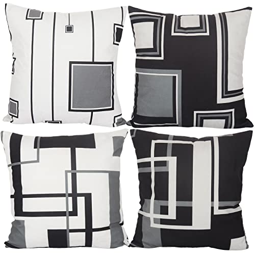 Aoihrraan 40x40cm Lot de 4 Housse de Coussin Noire Blanc Moderne Géométrique Motif Doux Court Peluche Carré Taie d'oreiller Décor Maison pour Chambre Salon Canapé Balcon Patio Jardin Chaise