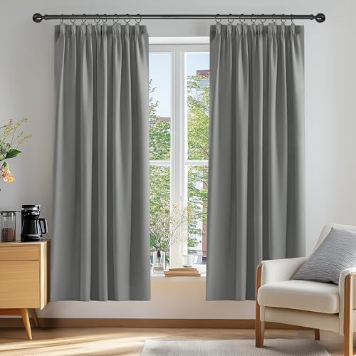 Deconovo Lot de 2 Rideaux Anti Chaleur Froid Salon Moderne Balcon Fenêtre Décoratif Cuisine Rideau de Porte Galon Fronceur Chambre Occultant Gris Claire 168x183cm