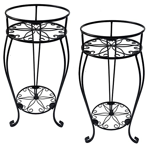 CASIMR Support à 2 étages en métal pour pots de fleurs d'intérieur et d'extérieur - 48,8 cm de haut - En fer antirouille - Pour jardin, terrasse, salon, coin balcon, noir