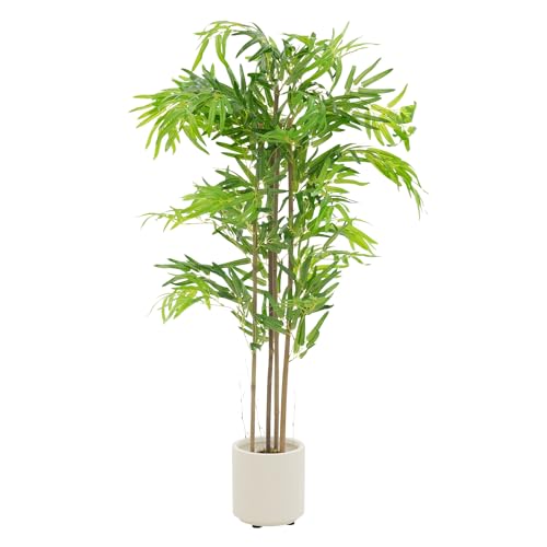 ML-Design Bambou Artificiel 120cm Décoratif, Plante Verte Grande avec Tronc en Bois Véritable, Fausse Plante en Pot, Déco Aspect Naturel, Arbre pour Intérieur/Extérieur Chambre Balcon Salon Bureau