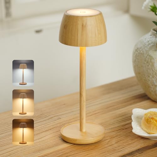 LuminexDesigns Lampe de Table LED Sans Fil en Bambou Rechargeable – Lampe de Chevet Tactile Dimmable, Style Scandinave Bohème, Étanche, Lumière d’Ambiance pour Chambre, Salon, Jardin et Extérieur