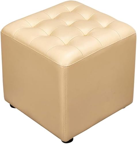 Rembourré en Cuir Cube Pouf Ottoman, Pouf Repose-Pieds en Bois Massif Carré en Cuir Salon Table Basse Petit Banc, Beige, 40x40x35cm(16x16x14inch)