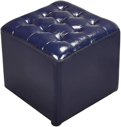 Rembourré en Cuir Cube Pouf Ottoman, Pouf Repose-Pieds en Bois Massif Carré en Cuir Salon Table Basse Petit Banc, Blue, 40x40x35cm(16x16x14inch)