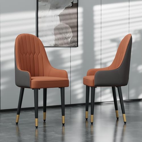 FATIVO Chaise Salle à Manger Moderne:Lot de 2 Chaise Cuisine Design Rembourrées Chaise Salon en Cuir Confortable avec Pieds en Métal pour Restaurant Gris Orange - 90x52x49cm
