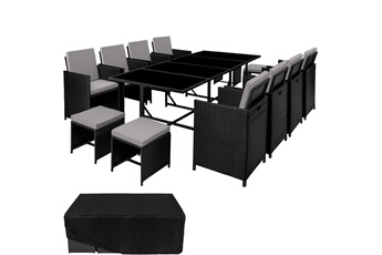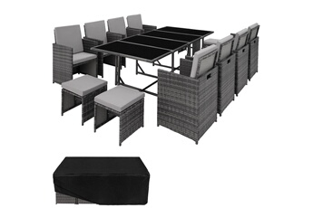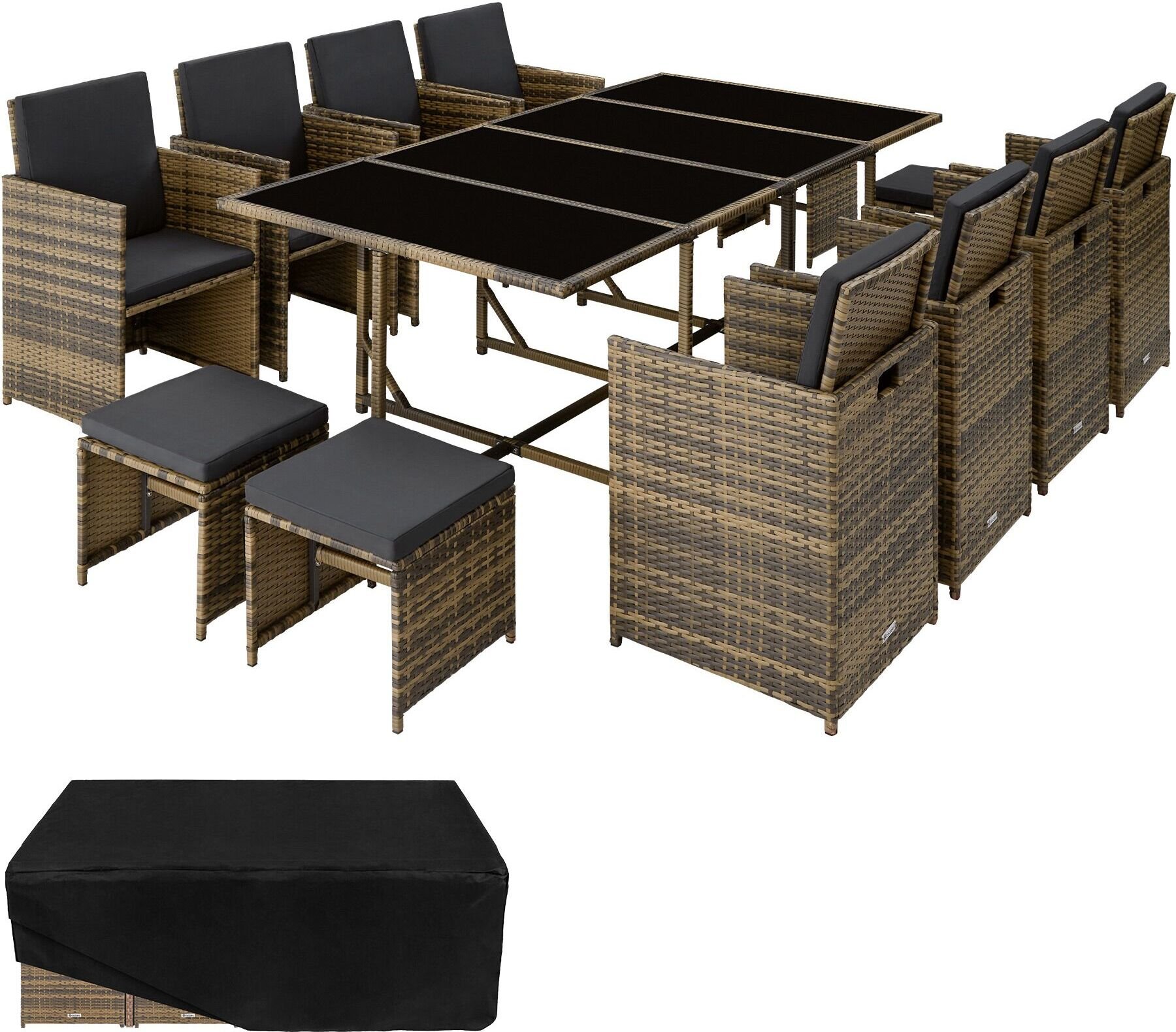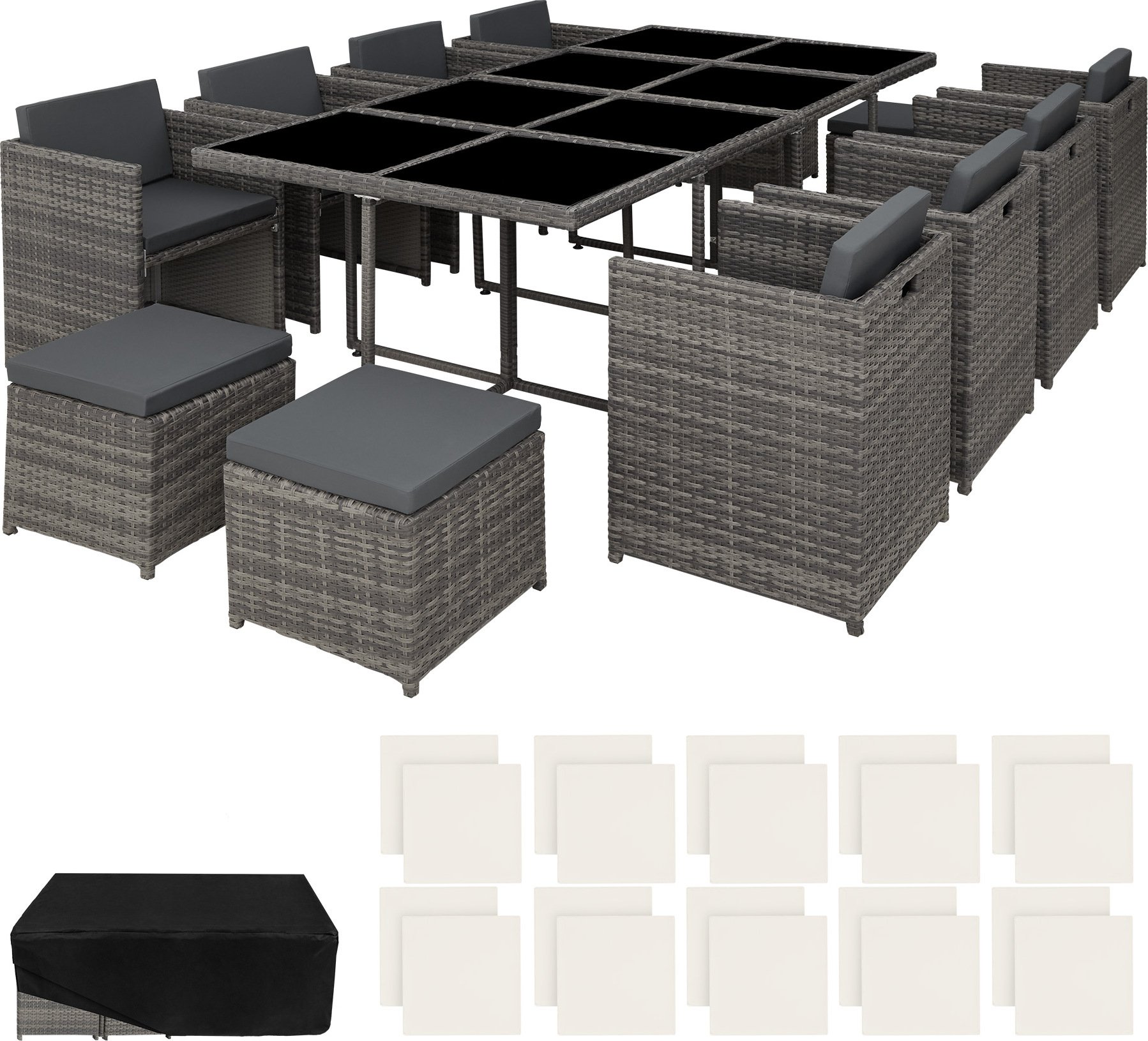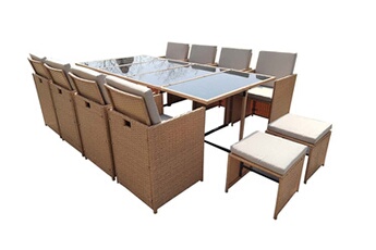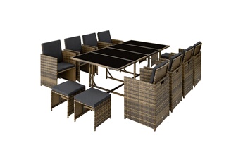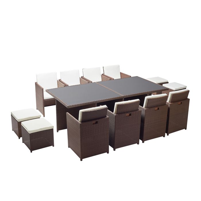 Alice's Garden Salon de Jardin 8-12 Places – Vabo – Coloris Beige, Coussins Beige, Table encastrable