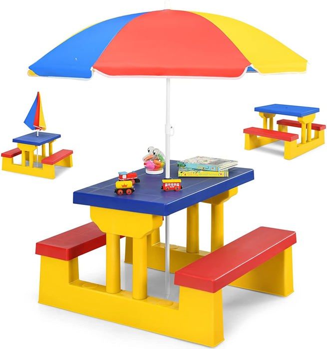 vidaXL AXI Table de pique-nique pour enfants Nick avec parasol multicolore 44165