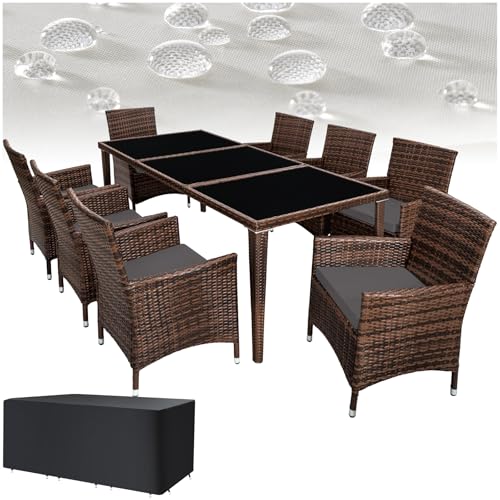 TecTake® Salon de jardin extérieur en aluminium avec 8 fauteuils en rotin, table, housse lavable et protection - mobilier facile d'entretien