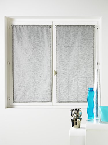 Home Maison - Petit Voilage à la Paire en Organza Uni - Polyester - Transparent, Brodé, Prêt à Poser - Ourlet Passe Tringle 4 cm - Salon, Chambre, Cuisine - 80 x 160 cm - Blanc
