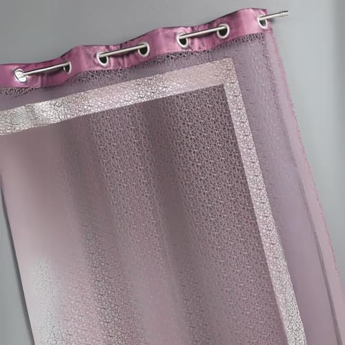 Home Maison - Voilage Filet avec Parement Taffetas - Polyester Uni - Œillets Ronds Argent Ø 4 cm avec Bande de Renfort - Léger pour Salon et Chambre - 140 x 240 cm - Prune