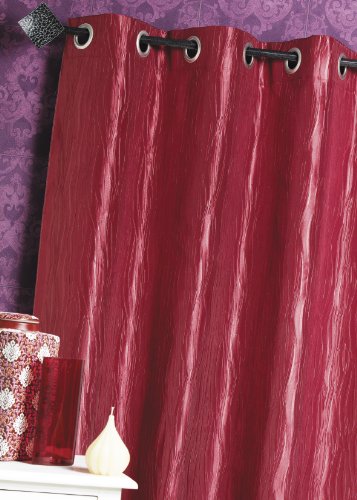 Home Maison - Rideau d'Ameublement en Taffetas Froissé - Élégance Unie - 8 Œillets Ronds Argent Ø 4 cm - Fenêtre Salon Chambre Bureau - 135 x 260 cm - Rouge