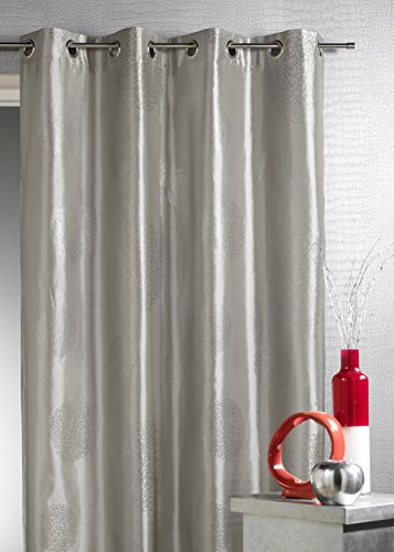 Home Maison - Rideau Ameublement en Taffetas Imprimé Argent - Polyester à Motifs - Occultant Anti Bruit - pour Salon et Chambre - 8 Œillets Ø 4 cm - 140 x 260 cm - Taupe