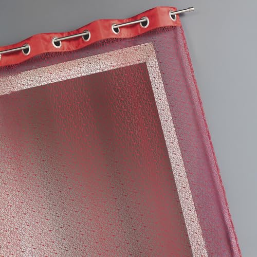 Home Maison - Voilage Organza et Jacquard Cordons Satiné - Polyester - Motifs Brodés - Oeillets Métal - Fenêtre Salon Chambre Cuisine - 140 x 240 cm - Rouge