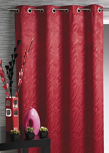 Home Maison - Rideau Obscurcissant Frappé - Polyester - Motifs Ton sur Ton - Isolation Lumière - Fenêtre Chambre Salon - Oeillets Ø4 cm - Prêt à Poser - 140 x 260 cm - Rouge