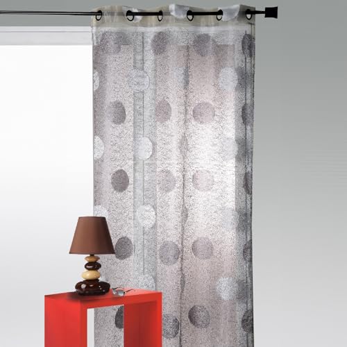 Home Maison - Voilage en Organza Jacquard Brodé Motif Gros Rond - Polyester à Motifs - Prêt-à-Poser avec Oeillets Canon de Fusil - pour Salon et Chambre - 130 x 240 cm - Gris Clair