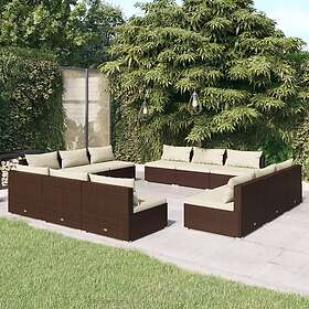 vidaXL Loungegrupp med dynor 12 delar konstrotting brun 3101584