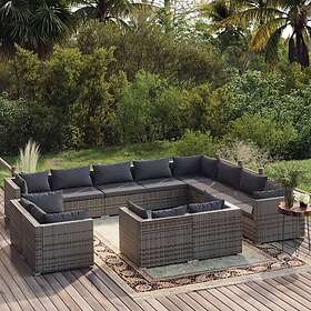 vidaXL Loungegrupp för trädgården 12 delar med dynor konstrotting grå 3101573