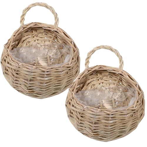 Ciieeo Panier Mural Tressé pour Fleurs Suspendu, Organisateur Décoratif pour Jardin Intérieur, Lot de 2 Paniers en Osier 18 CM, Style Champêtre, Gain de Place, Cuisine et Salon