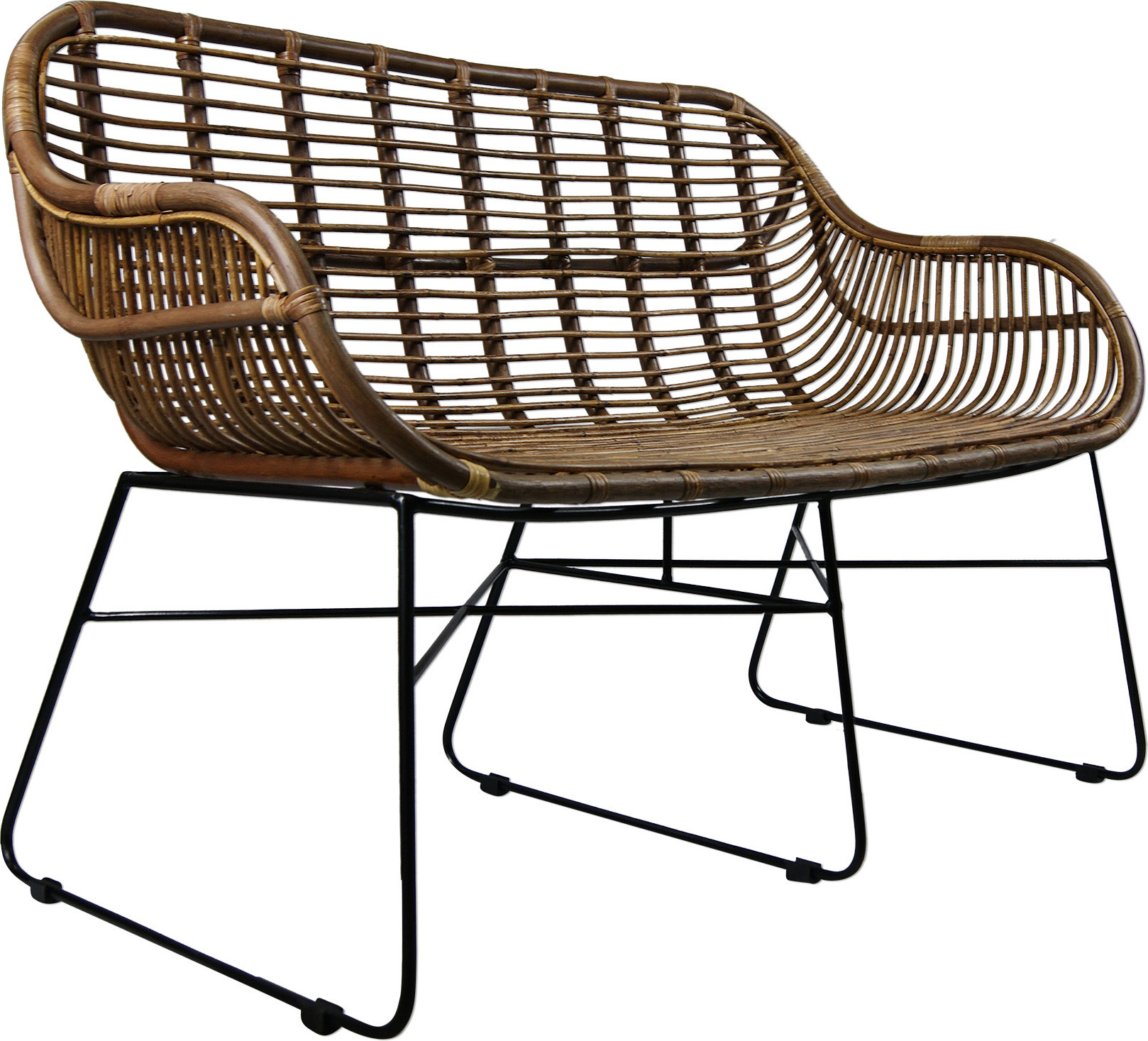 Canapé en rotin Lycce VENUS Canapé en osier - marron - Style rétro des années 50 Salon Loft Salle à manger Jardin Cuisine Bistro Balcon Terrasse Avec accoudoirs, couleur : marron