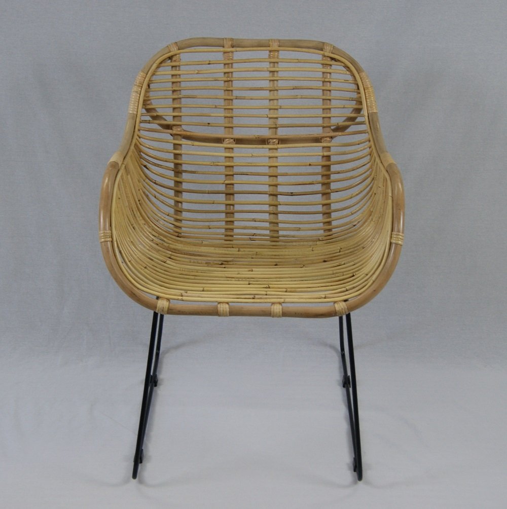 Chaise en rotin Lycce VENUS Fauteuil en osier - naturel - Rétro années 50 Salon Loft Salle à manger Jardin Cuisine Bistro Balcon Terrasse avec accoudoirs, couleur : naturel