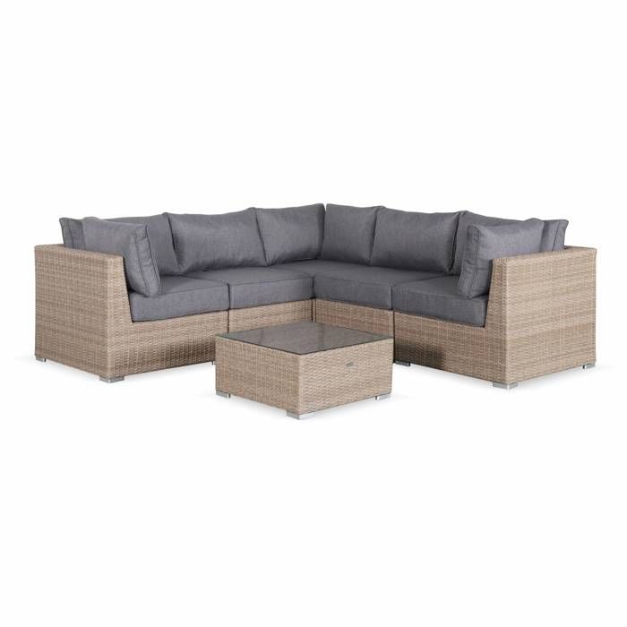 Sweeek Salon de jardin Premium en résine tressée arrondie – VITTORIA Résine naturelle style osier. coussins gris foncé 5 places.
