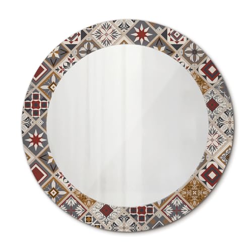 Miroir Imprimé 60 cm Decoration Murale sans Cadre Décoratif Design Moderne Suspendu Rond pour Salle de Bain Chambre à Coucher Salon Minimaliste - Motif Turc