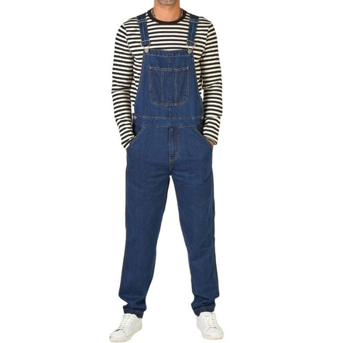Salopette HommeSalopette pour homme en jean avec Poches Multifonctions streetwear Réglable Salopette de Travail Regular-Bleu Foncé