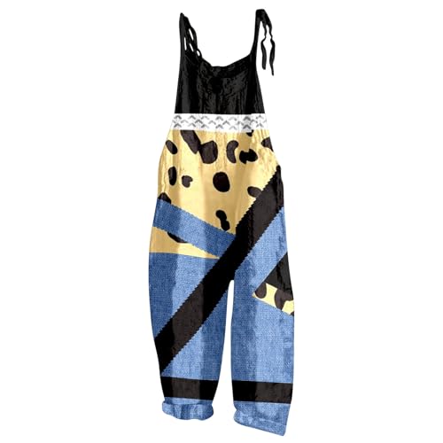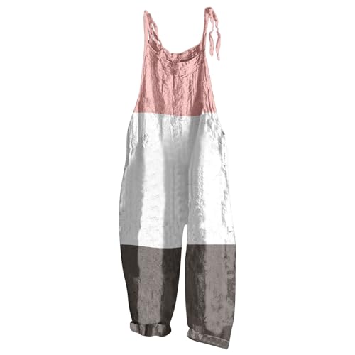 Salopette de Travail Femme Coton Lin- Salopette Ample Grande Taille à Blocs de Couleurs Coloré Épissage Combinaisons Larges Bretelles avec Poches Casual Large Pas Cher Pantalon Combipantalon