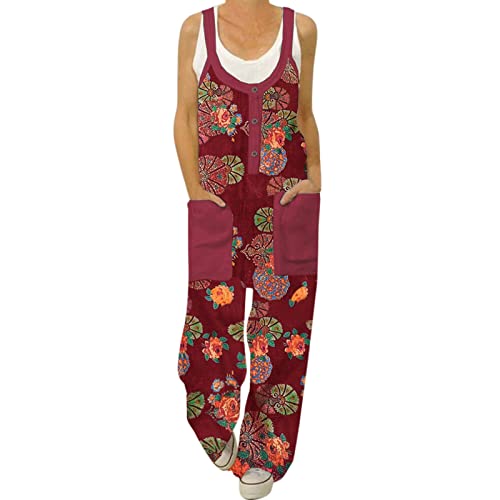 Salopette Travail Femme - Combinaison Longue Décontractée pour Femme avec Imprimé Fleuri et Poches Mode