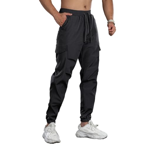 Generisch Salopette de travail pour homme - Stretch Cargo - Longue - Pantalon cargo - Coupe ajustée - Pantalon de travail - Léger - Baggy - Décontracté - Gris - Taille 3XL