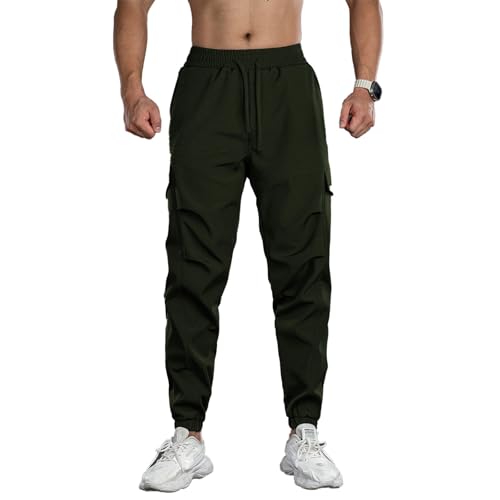 Generisch Salopette de travail pour homme - Stretch Cargo - Longue - Pantalon de travail d'hiver - Coupe ajustée - Pantalon de travail léger baggy décontracté - Vert - Taille 3XL