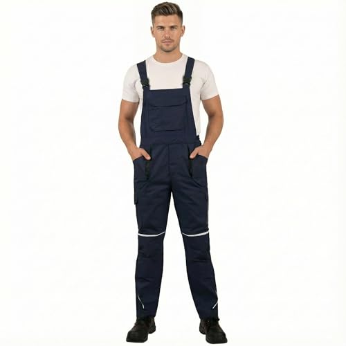 BWOLF Salopette de Travail Homme en Coton Bleu avec Poches Fonctionnelles et Bandes Réfléchissantes