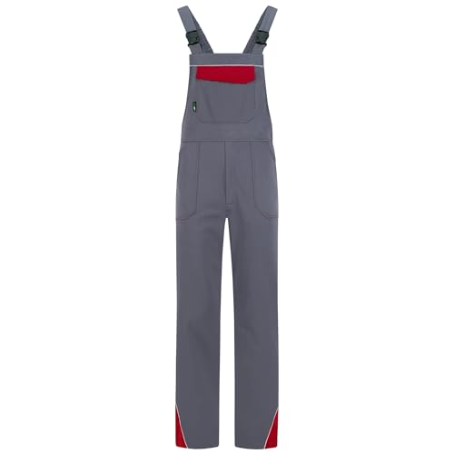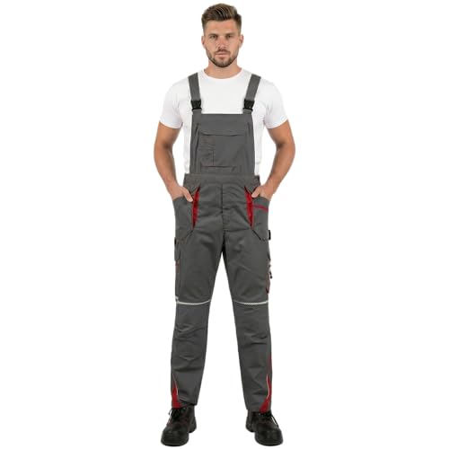 BWOLF ARES Salopette de travail pour homme, 100 % coton, Gris/rouge 1, S