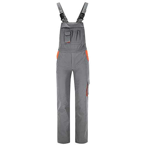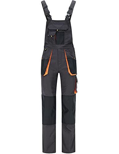 BWOLF ATLAS Salopette de travail pour homme, classique renforcée avec polyester 600 deniers, avec poches multifonctionnelles, gris foncé/orange, (gris foncé, 4XL)