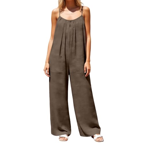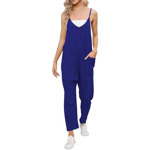 Generisch Salopette Femme Confortable Été Sport Élégant Salopette Jumpsuits Mode Grandes Tailles Vintage Décontracté Respirant Pantalon de Travail avec Bretelles Pantalon d'été