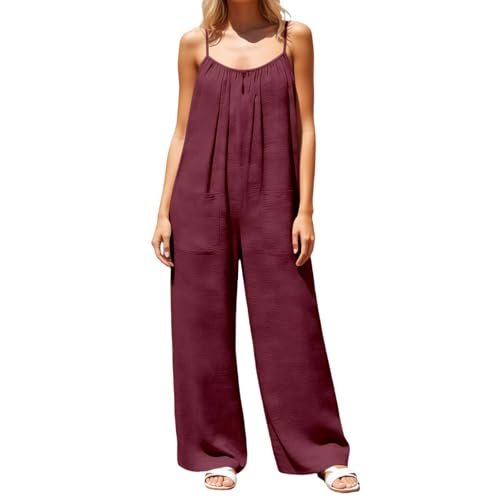 Combinaison Femme Ete Salopette, Combinaison Femme Chic sans Manches Débardeur À Bretelles Jumpsuit Vintage Couleur Unie Décontracté Col Rond avec Poches Vacances Plage Pantalon Playsuit