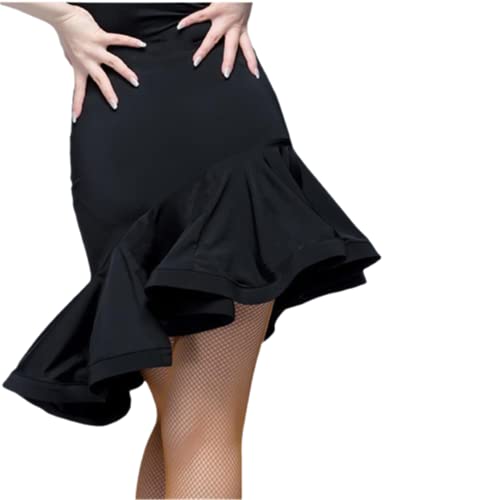 CSSOL Femmes Taille Haute Jupe Latine Plissée Pratique Vêtements De Danse À Volants Conception Demi-Corps Jupe pour Adulte Tango Salsa Rumba Robe Danse Scène Performance Costume,Noir,L