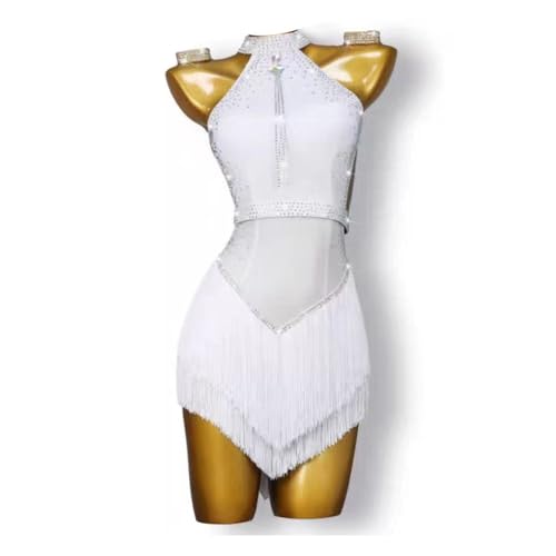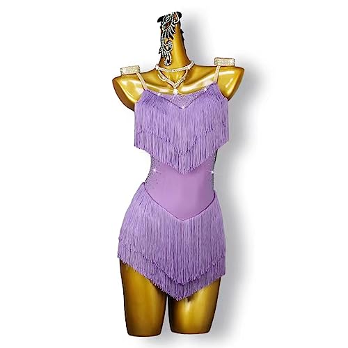 MLYYX Costume De Spectacle De Salsa À Pompons Robe D'entraînement De Danse Latine pour Femmes Robes De Danse De Salon Cha Cha pour Samba,F,XXS