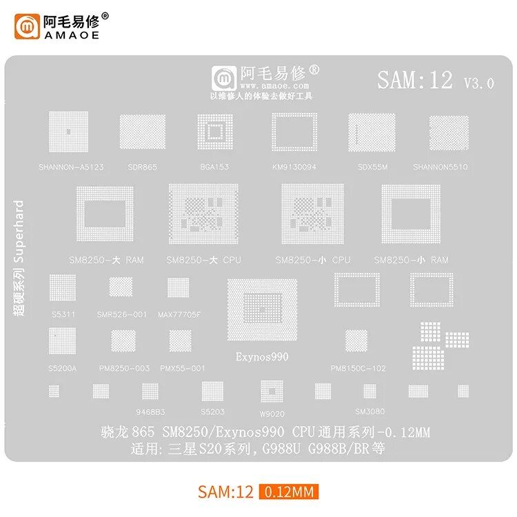 Amaoe Sam 1-17 Bga Reballing Stbbles Pour Samsung A S Note J Sereies A53 A536 Exynos1280/E8825 Éventuelles U13p/Éventuelles U14p S22 S22ultra - Type Sam 12