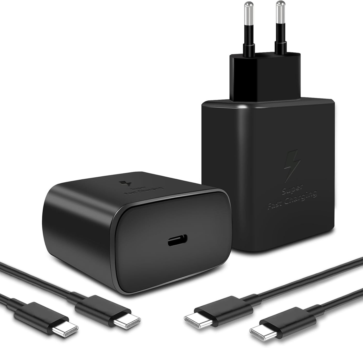 Chargeur USB C 45W Chargeur Sam-Sung Charge Rapide pour Samsung Galaxy S25, S24+, S24 Ultra, S23+, S23 Ultra, S22, S21, Note20, Tab S9 Ultra et 2M Câble USB C, Prise Secteur USB Type C Adapteur Noir