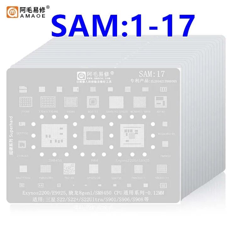 Amaoe Sam 1-17 Bga Reballing Stbbles Pour Samsung A S Note J Sereies A53 A536 Exynos1280/E8825 Éventuelles U13p/Éventuelles U14p S22 S22ultra - Type Sam 17